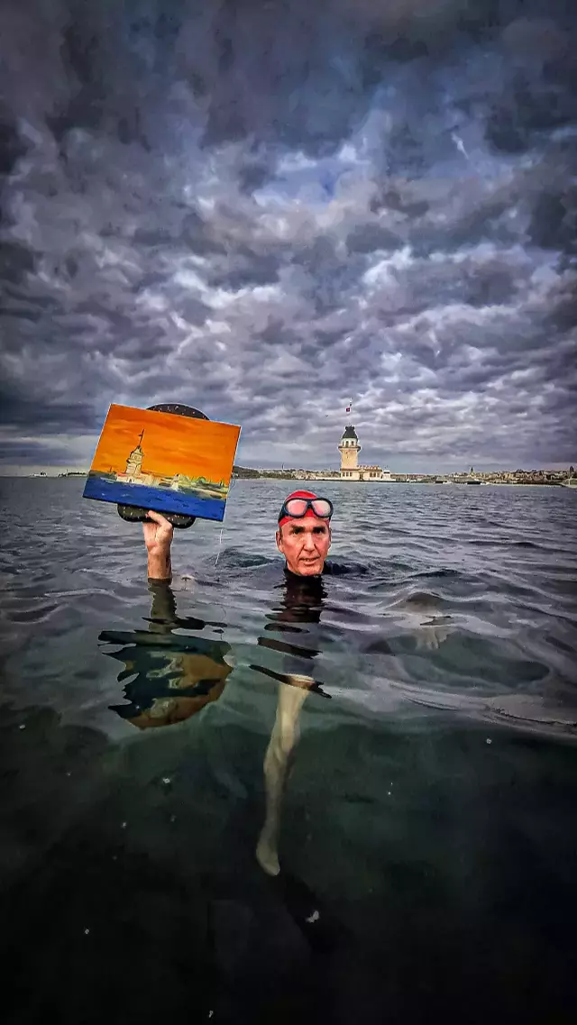 Genco Gülan, Kız Kulesi’ne Yağlı Boya Tablosuyla Yüzdü